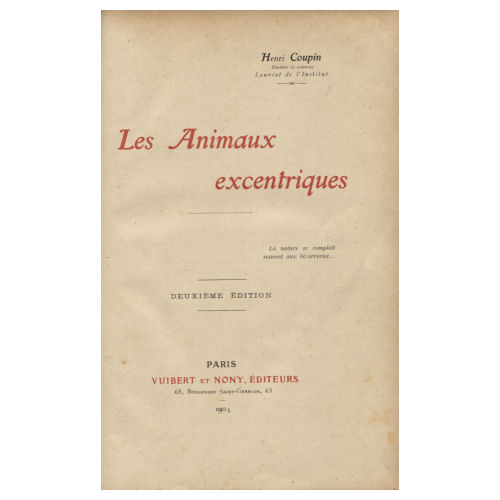 Belle édition de 1904 des Animaux Excentriques, de Henri Coupin.
