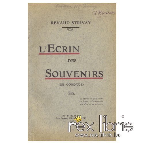 Pour moi qui vécus dans les ombres délicieuses et les umières tranquilles du Condroz, il n'est pas de souvenirs plus attendrissants que ceux qui dorment en ma mémoire et que le baiser des Muses réveillent quelquefois.