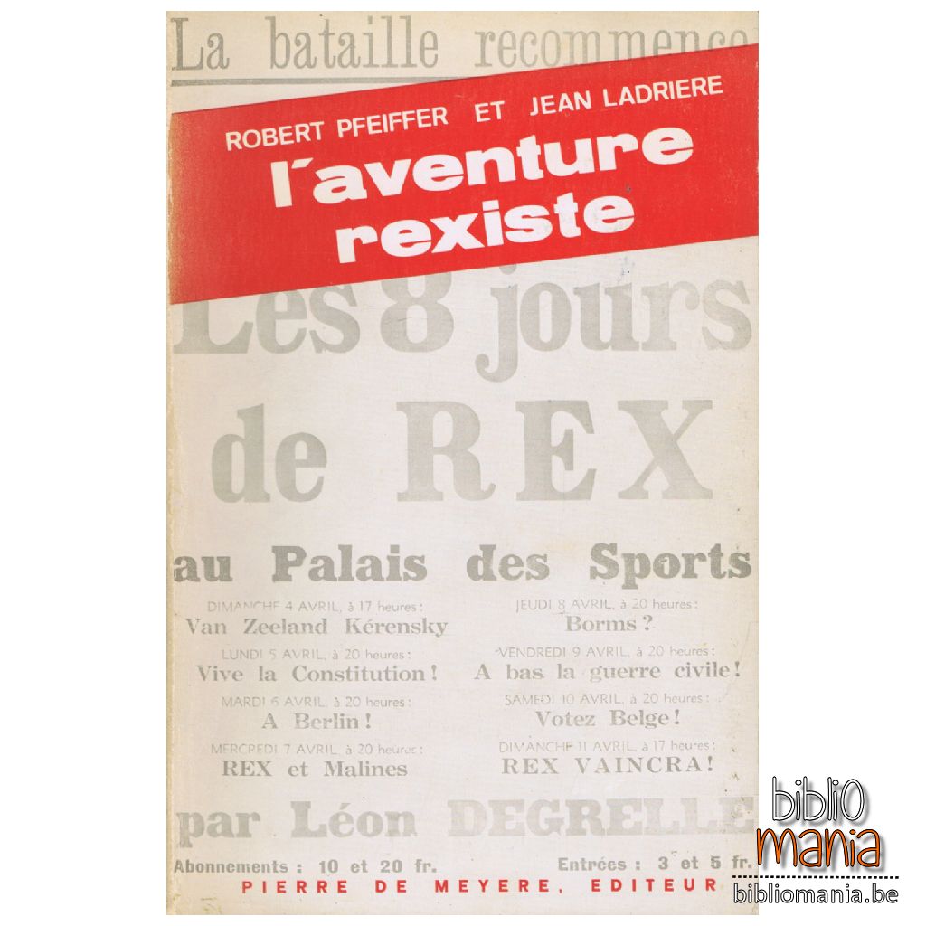 Robert PFEIFFER et Jean LADRIERE ont tenté d'en écrire l'histoire. Ils racontent la vie du mouvement rexiste depuis sa naissance jusqu'à la Libération : l'enfance de Degrelle. Degrelle à Louvain, le Congrès de Courtrai, les élections de 1936. les Rexistes au Parlement. Degrelle contre Van Zeeland et contre le Cardinal Van Roey. les élections de 1939, la guerre de 1940, l'occupation, les collaborateurs et les résistants.