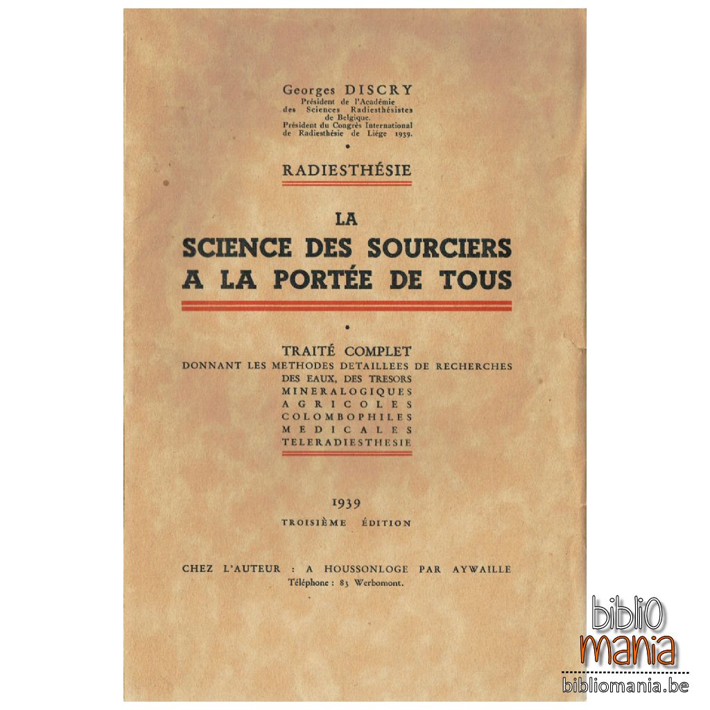 Vous figurez-vous l’immense satisfaction intellectuelle que me procure le livre intitulé : La Science des Sourciers à la portée de tous. Imaginez-vous le vieux Professeur que je suis posant le premier les bases fondamentales de la Radiesthésie scientifique en Vannée dix-huit cent et nonante-six par la découverte des ondes odiques et l’émission fondamentale de la Loi fondamentale de la Radiesthésie Biologique. Puis mes travaux précités se diffusant à travers le monde sont confirmés par mes Collègues de la Science' dans les autres branches de la Radiesthésie relative aux êtres non vivants. A l’étranger les corps savants me reconnaissent publiquement comme Fondateur de la Radiesthésie scientifique et Liège comme berceau de la susdite et nouvelle Science. Comme c’est d’ailleurs la loi commune qui dit que nul n’est prophète dans son pays, en Belgique j’étais entouré de quelques collaborateurs que mes travaux avaient amenés à l’étude de ces questions et nous travaillons dans le silence du laboratoire entourés de l’indifférence générale et parfois de l’hostilité d’hommes plus enclins à la critique inconsidérée qu’à la recherche de la Vérité. Depuis douze ans urt homme travaillait dans le silence, c’était Georges Discry. Celui qui a passé dans le domaine de la Science ne s’y trompe pas, en approchant de Georges Discry, reconnaît de suite l’homme de science et l’expérimentateur profonds, il se sent de suite en présence d’un confrère. Ce qui est plus beau [...]