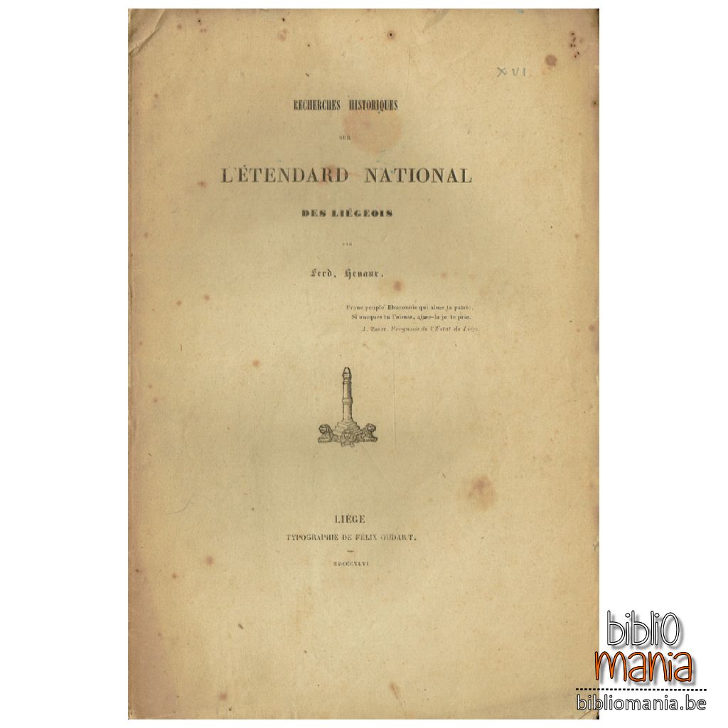 Dans ces temps gothiques que notre siècle se plaît à calomnier, au moyen âge, il existait des nationalités nombreuses et toutes jouissant d’une vie forte, énergique, puissante. Comme signe de l’individualité politique qui les caractérisait, elles avaient des couleurs et des bannières '. Les Liégeois avaient pour couleurs le rouge et jaune, et pour bannière l' Étendard de St.-Lambert. C’est de l’Etendard que nous parlerons dans ces recherches.