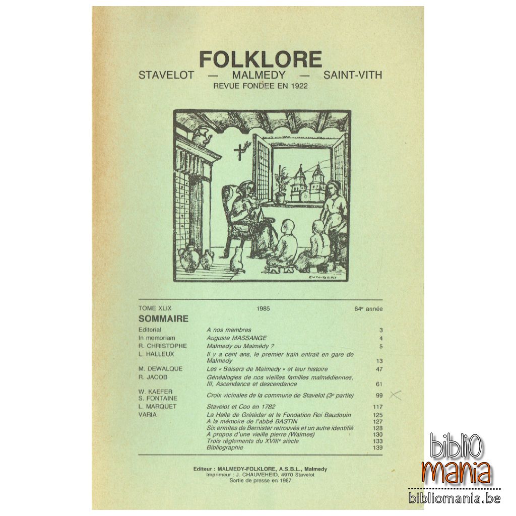 Varia : La Halle de Grètèdar et la Fondation Roi Baudouin; A la mémoire de l'abbé Bastin; Six ermites de Bernister retrouvés et une autre identité; A propos d'une vieille pierre (Waimes); Trois règlements du XVIIIe siècle.