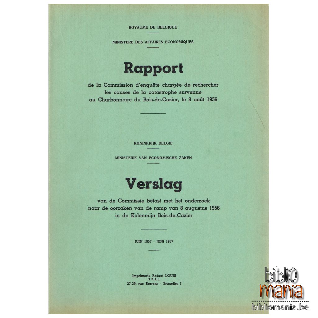 Rapport de la Commission chargée de rechercher les causes de la catastrophe survenue au Charbonnage du Bois-de-Cazier, le 8 août 1956